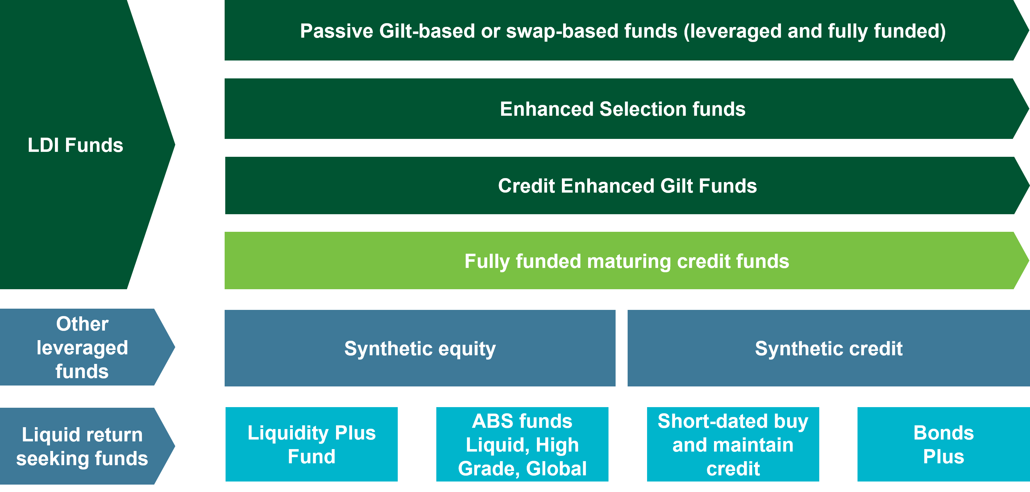Flexibility: you can isolate the specific risk to hedge - interest rate, inflation, or both - and the timing of each, select the most appropriate type and mix of funds to meet your specific needs. Our range includes partially-funded portfolios, meaning you can plan an effective hedge using only a portion of your assets, helping to maximise the value of assets free to invest for growth.